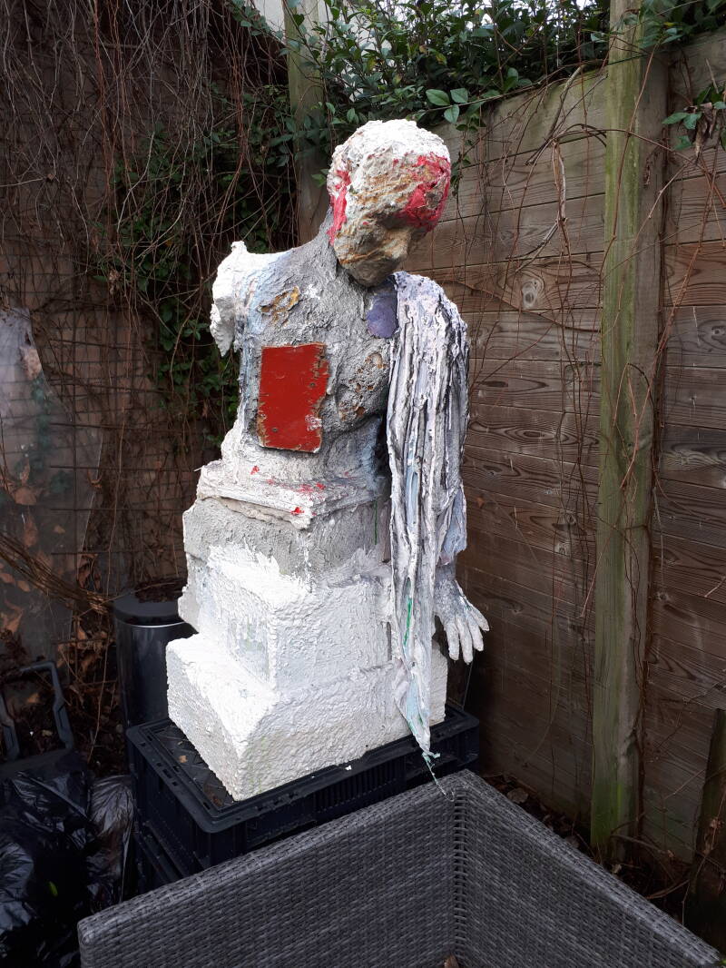 Ik heb de installatie Woekerbeeld geplaatst. (polyester, foam, hout en staal.)